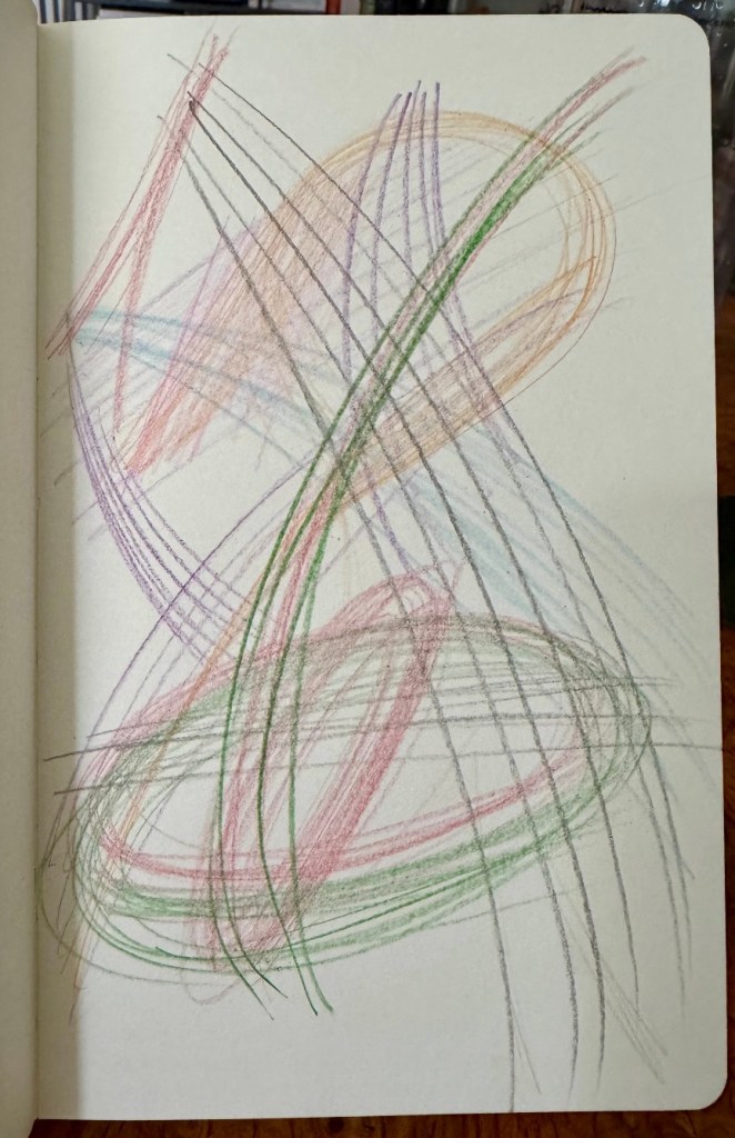 For noen uker siden fikk jeg en notatbok med blanke sider og tilhørende fargeblyanter av en kamerat, med oppdrag om å uttrykke meg gjennom bilder heller enn ord. Det er en spennende oppgave og samtidig litt skremmende… Hva om jeg ikke evner å uttrykke det jeg kjenner på innsiden, når jeg må bruke farger og ikke kan si det med ord?